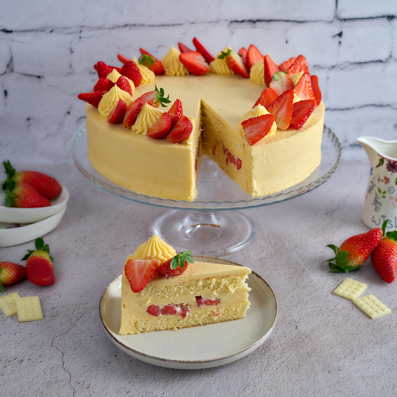 Diplomat torta s jagodama spaja svježe jagode, mekan biskvit, kremu od vanilije u lagan i osvježavajući desert. Dostupna u verzijama od 8 ili 16 šnita — odličan izbor za druženja i posebne prigode.